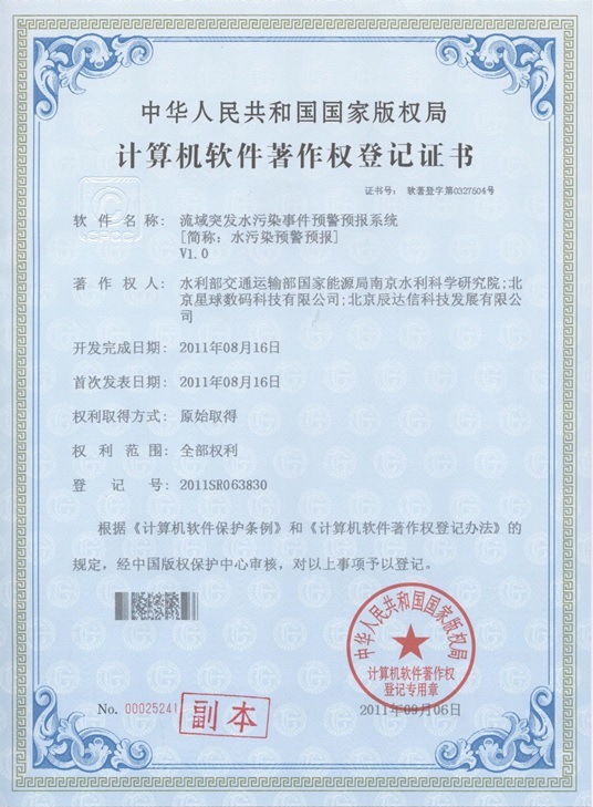 “流域突发水污染事件预警预报系统”(2011年)